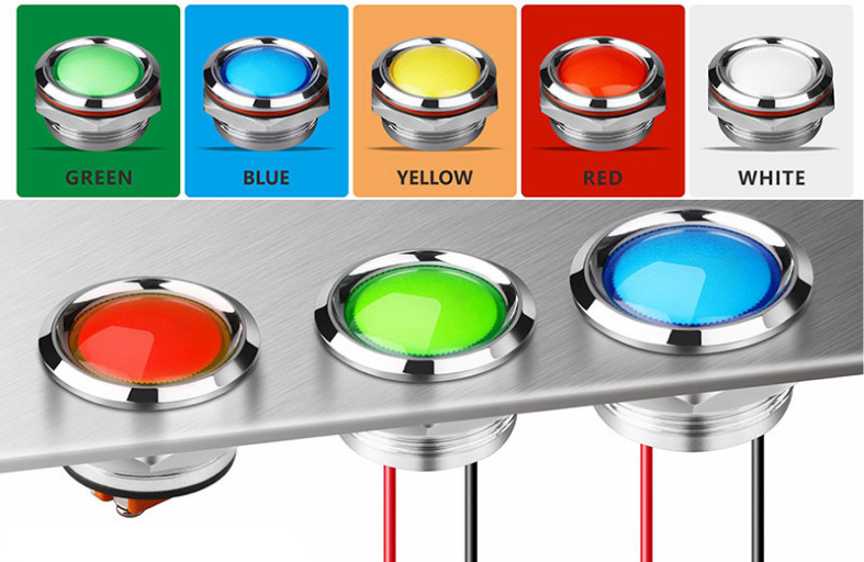 LB16/19/22/25Z螺絲腳款/帶線款(16/19/22/25m§αm金(jīn)屬指示燈紅(hóng)綠(lǜ)藍(lán&)黃(huáng)白(bái)5-24V220V防水(s₩★huǐ),帶線款/螺絲腳款)