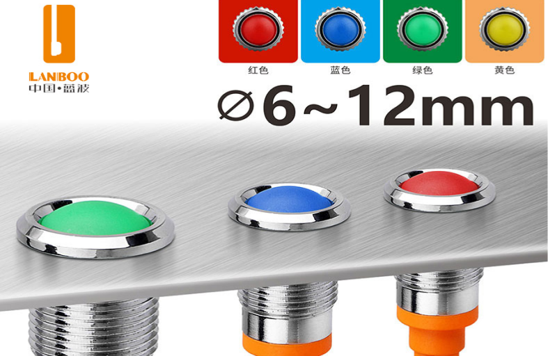 LB6-12Z(6mm 8mm 10mm 12mm高(gāo)端金↑✔(jīn)屬指示燈警示燈5V/24V/220V紅(hóng)綠(lǜ)藍(láγ≤®γn)黃(huáng)色藍(lán)波)